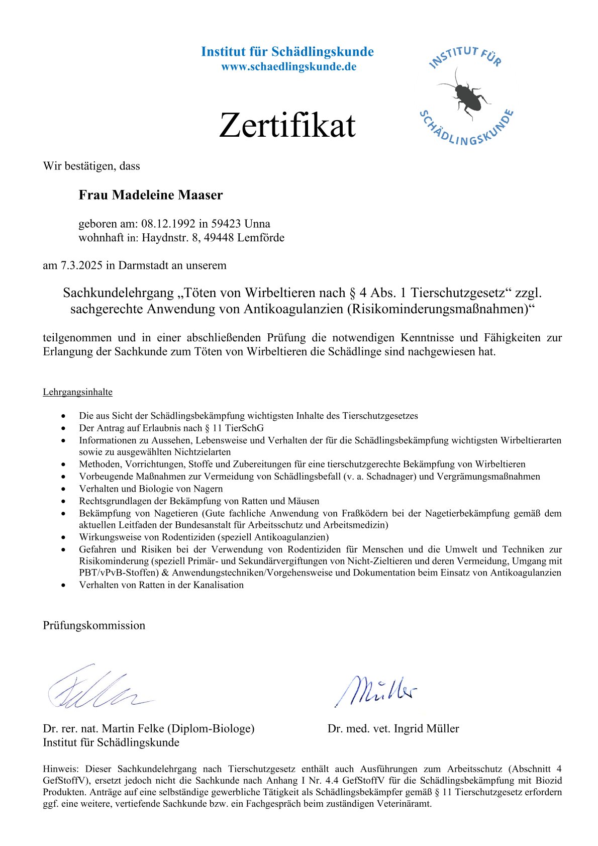 Nach der Detektion erhalten Sie eine klare Einschätzung und Empfehlungen für mögliche, zugelassene und rechtssichere Maßnahmen – unabhängig vom Hund.